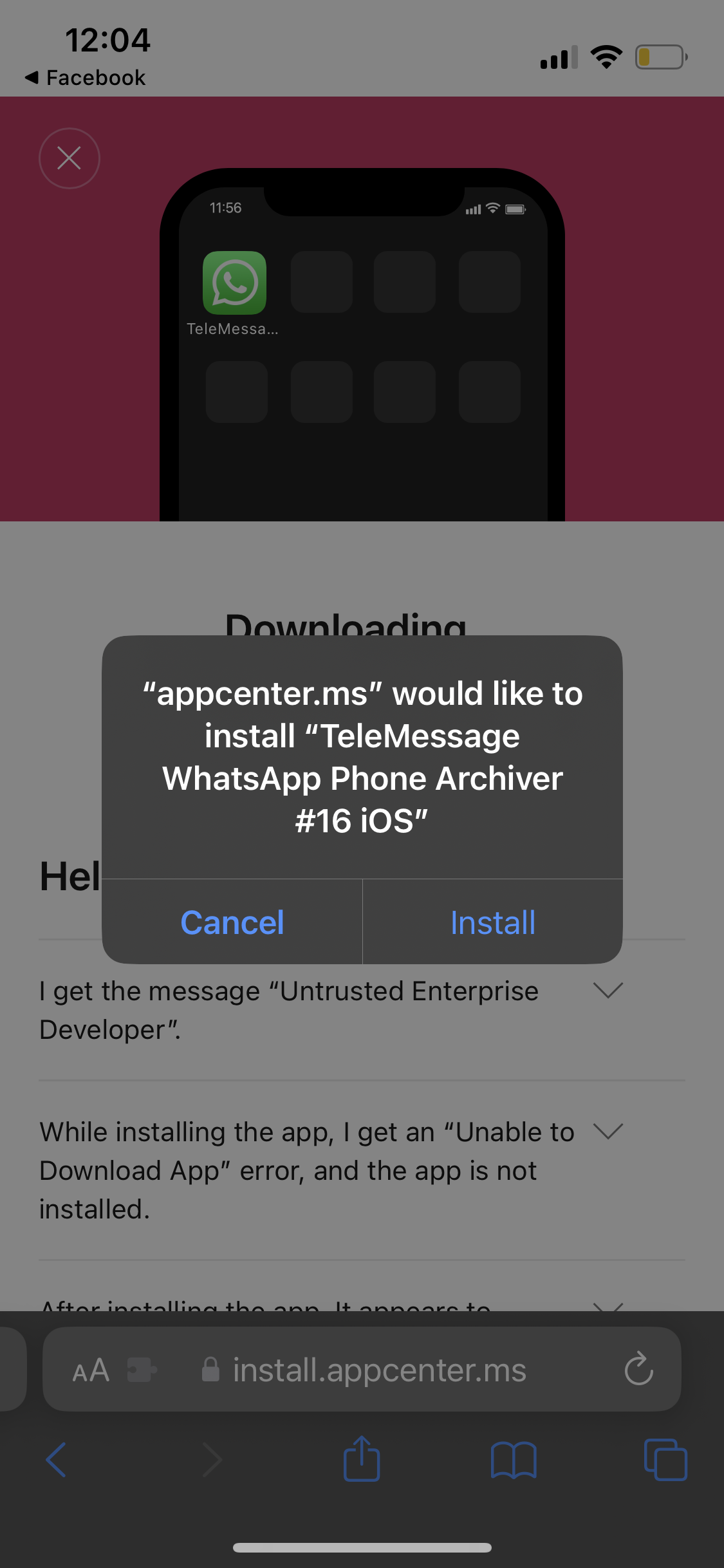 Once the TM WPA app is installed on your device, a contact named “Blocked TeleMessage WhatsApp Archiver Number” is automatically added to your iPhone contacts.