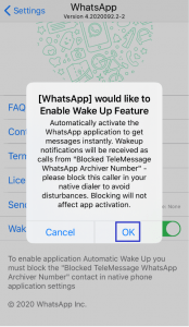 That’s it – you are all set. Every 7 minutes, a call will be made to your WhatsApp registered number to wake up the app. You will, however, not experience any notifications or interference.