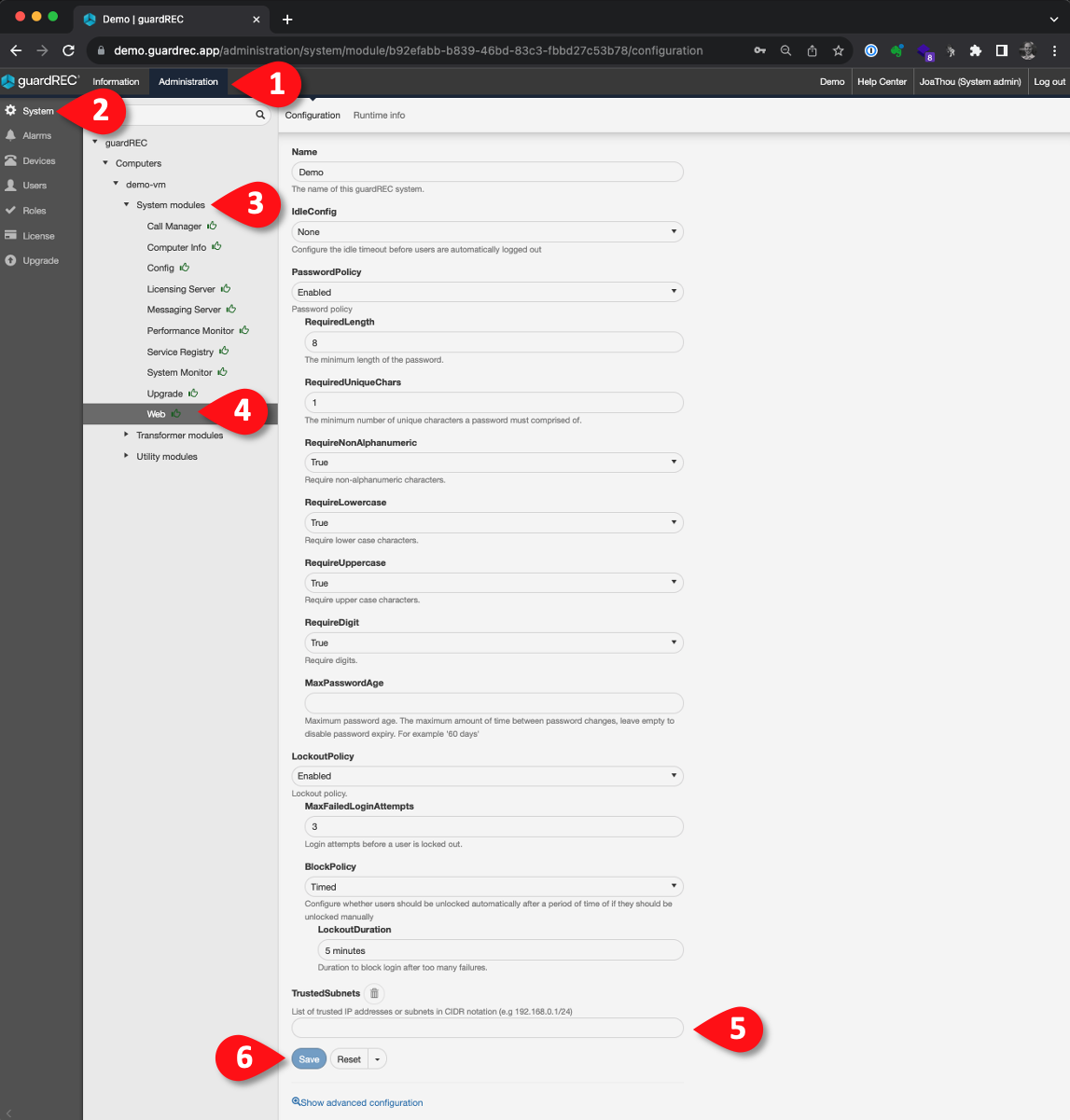 To enable Trusted Subnets, you must sign in as a System Admin with the Manage System permission. If you do not have this permission, please contact your System Admin or support@guardrec.no.