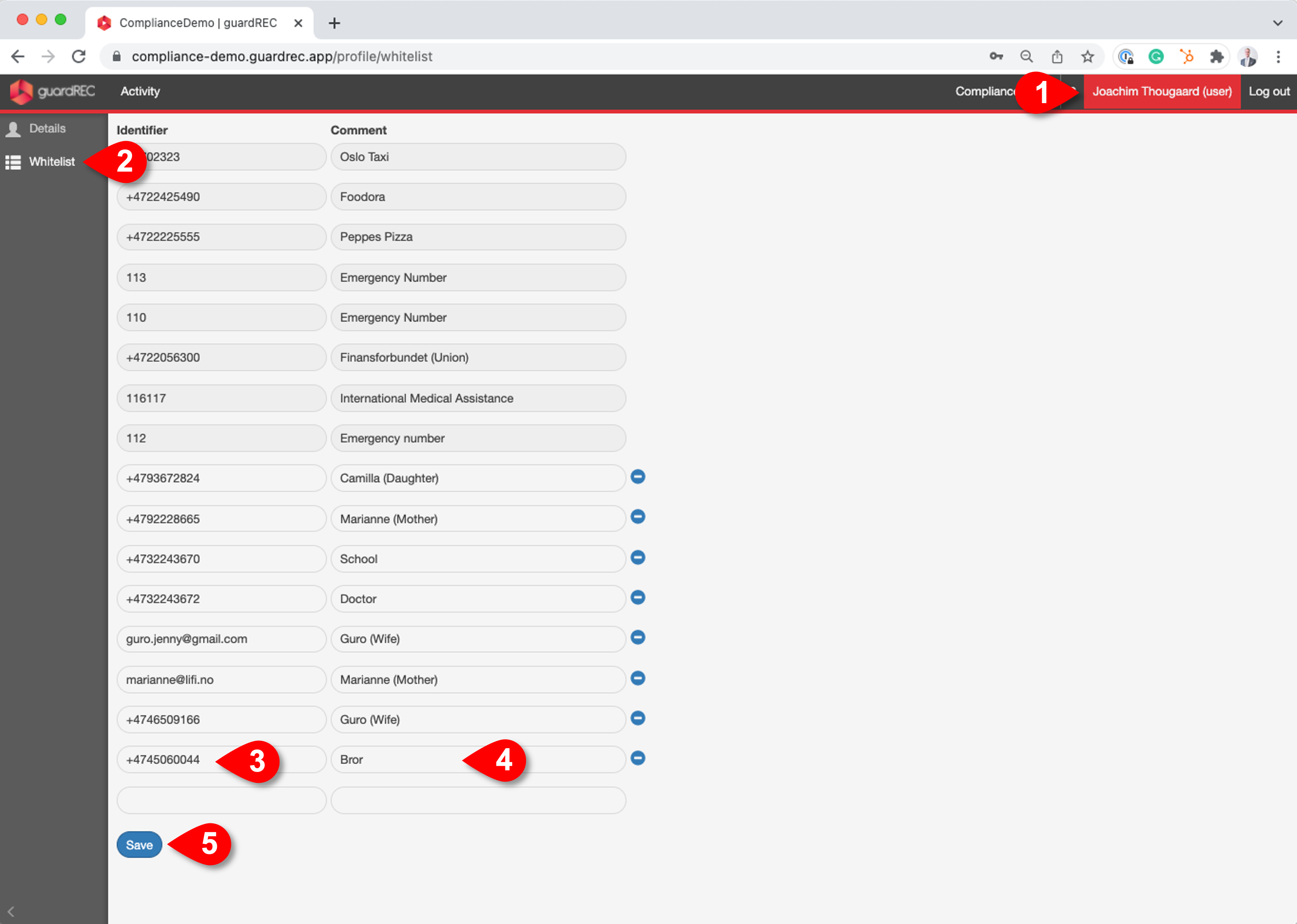 This article describes how to manage your whitelist in GuardREC® Compliance.